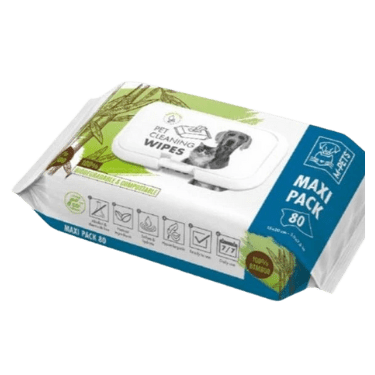 M-Pets vlažne maramice bez alkohola i bez parabena, za održavanje higijene Vaših ljubimaca. Za brzo čišćenje, za čišćenje izmedju kupanja, za čišćenje jako zaprljanog krzna…Ove vlažne maramice čiste, dezodorišu i vraćaju sjaj krznu vašeg ljubimca. U pakovanju se nalazi 80 komada.